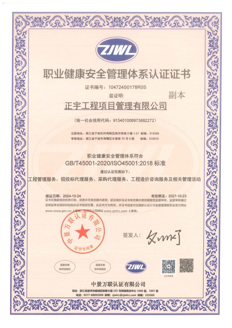 正宇工程項目管理有限公司成立于2009年,注冊資金6080萬,注冊地為浙江省寧波市杭州灣新區。公司擁有國家住建部頒發的工程造價企業甲級資質、招標代理資質等等;是一家專業從事工程項目管理、企業管理、政府采購代理服務、招投標代理服務、信息技術咨詢服務及其他技術服務的綜合型工程咨詢公司。